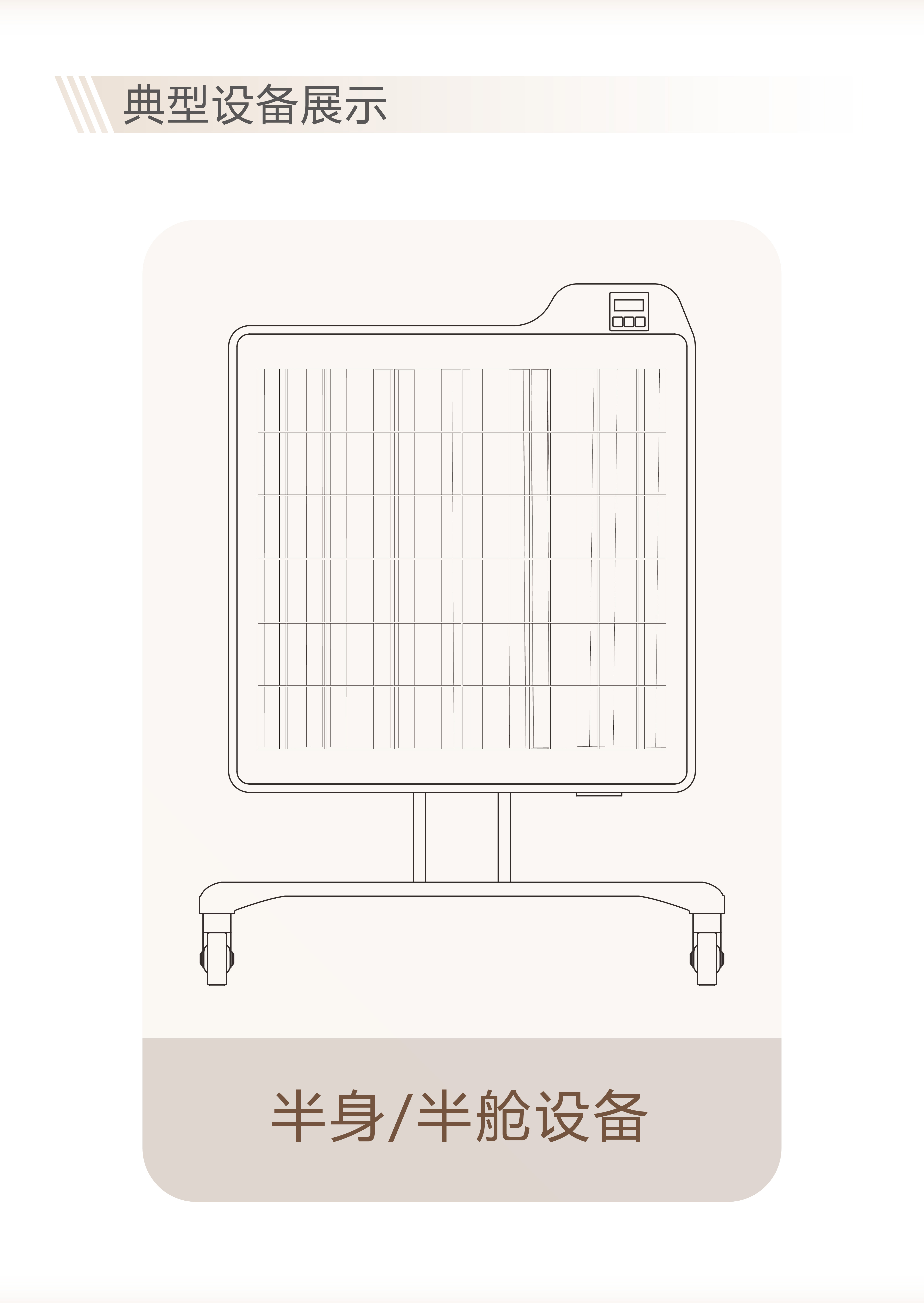 皮损面积局限并较分散时,选手持/局部设备;大面积泛发选半身/半舱设备;面部等精细部位选笔式设备。