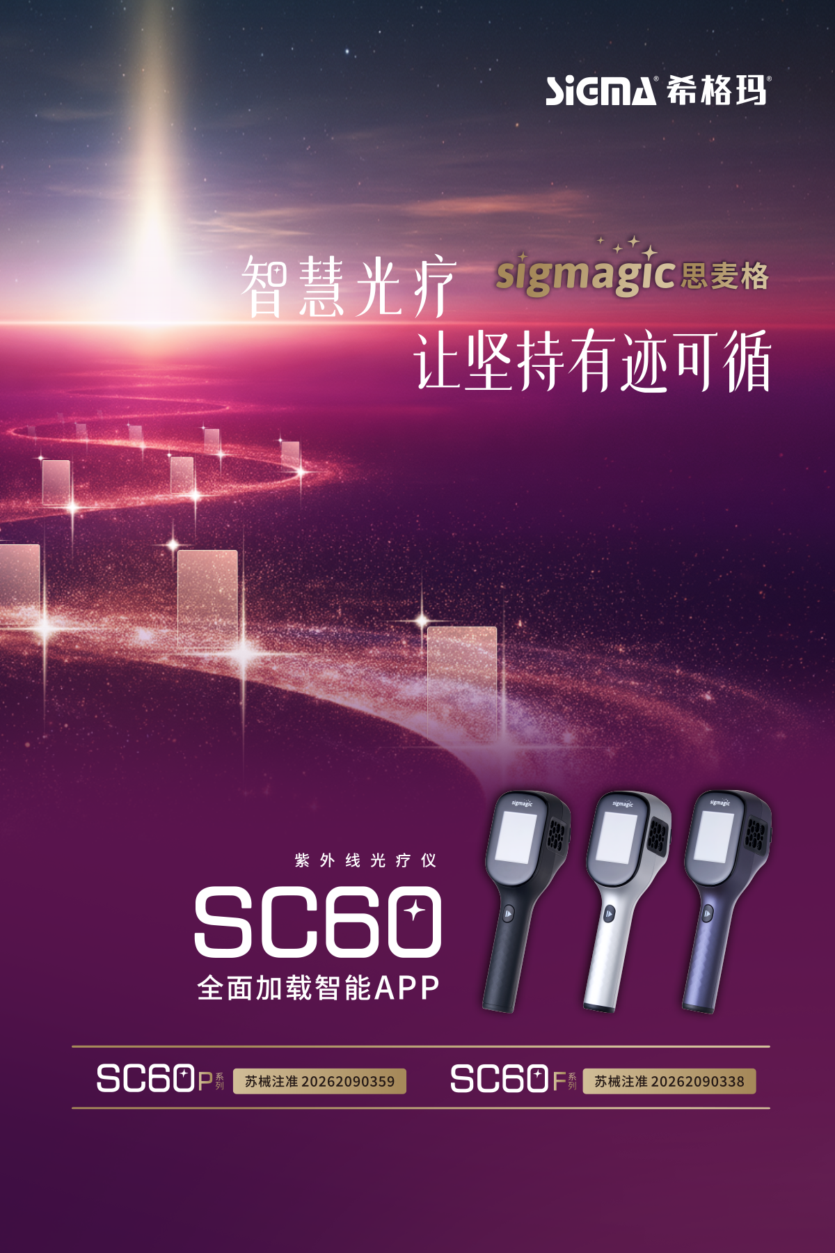 针对这一痛点,希格玛依托其在光医学领域三十余年的技术积淀,于2026年春季正式推出SC60及其衍生的数字化管理系统。该产品以“智慧光疗”为核心设计理念,旨在为银屑病、白癜风等需要长期进行家庭光疗慢病管理的患者提供一种可记录、可追溯、可同步的家庭光疗新生态。