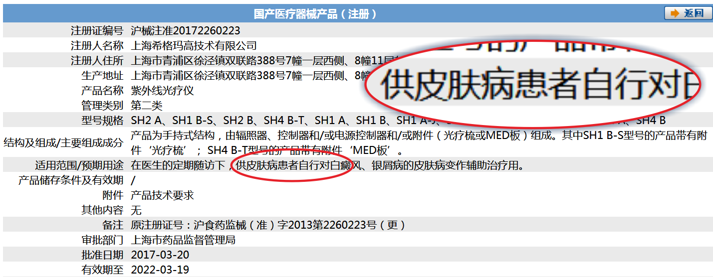 对于光疗仪这类既有医用款又有家用款的医疗器械,消费者在查验《注册证》时尤其需要注意的一个重要信息就是产品的适用范围,这个信息不仅能提示您购买的产品是否真正对您的疾病有效,还能提示这个医疗器械是适合家用,还是仅供医院或机构使用。在这个问题上,消费者有个常见认知误区,那就是“供医院使用的产品,一定更专业,更安全,效果更好”。其实并非如此。